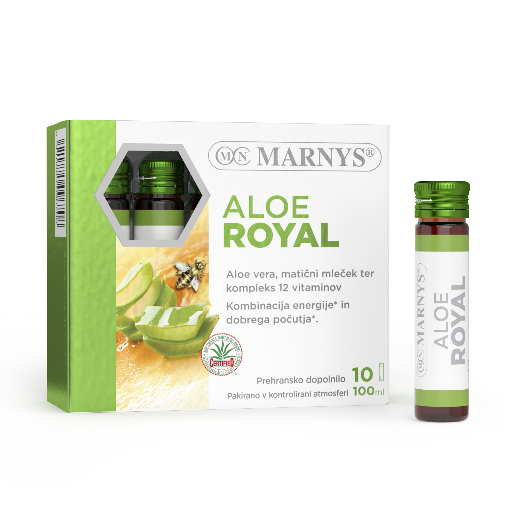 MARNYS® Aloe Royal je dopolnilo na osnovi Aloe Vere, matičnega mlečka, kompleksa vitaminov B, C, E, A in D in fruktooligosaharidov, ki dopolnjujejo prehrano in energijske potrebe telesa ter omogočajo telesno dobro počutje.